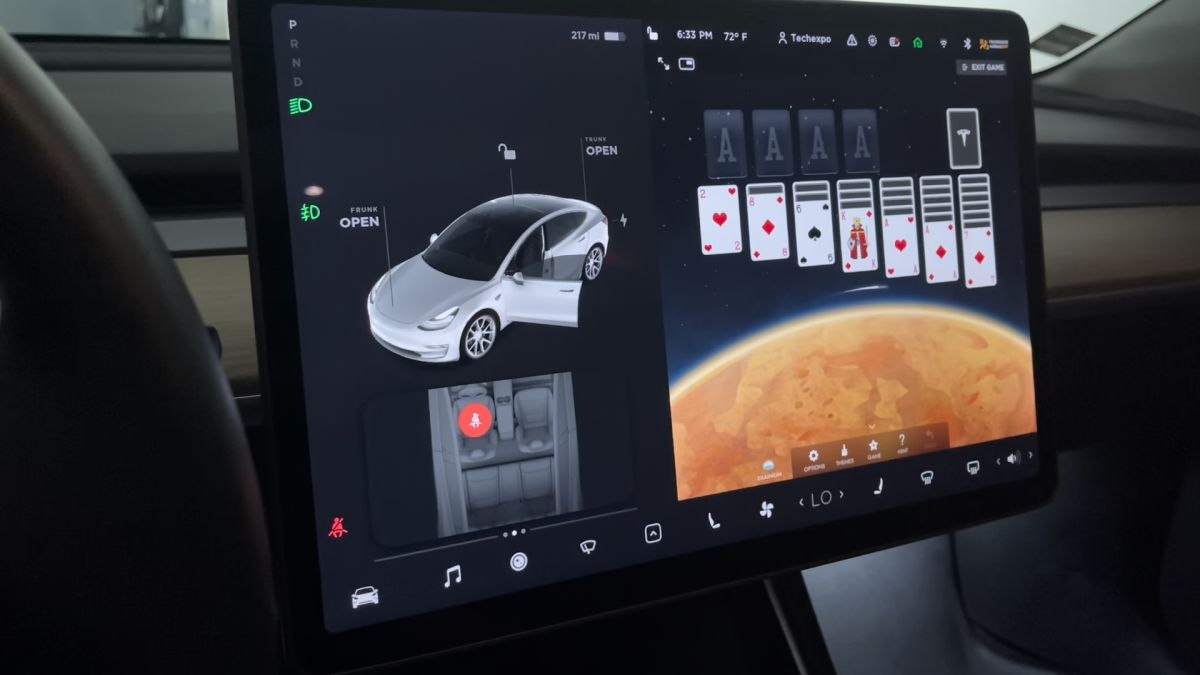 ②Tesla車には数年前からダッシュボードでゲームをプレイする機能が搭載されているが、アップデート前には、停車中にしかプレイできないようになっていた。